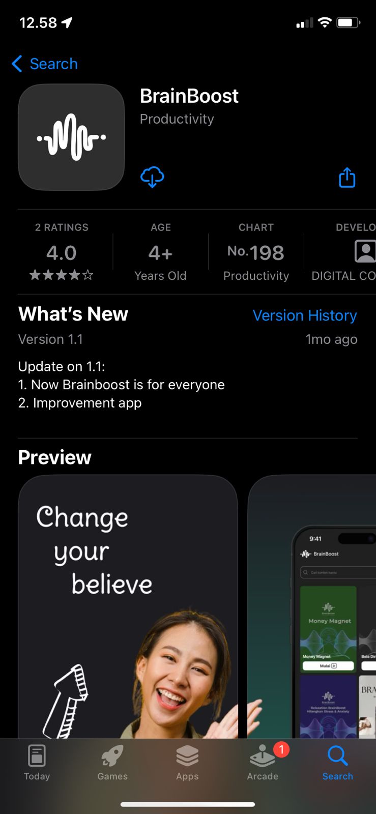 ## Step 1. Download dan Buka Aplikasi BrainBoost dari *App Store*